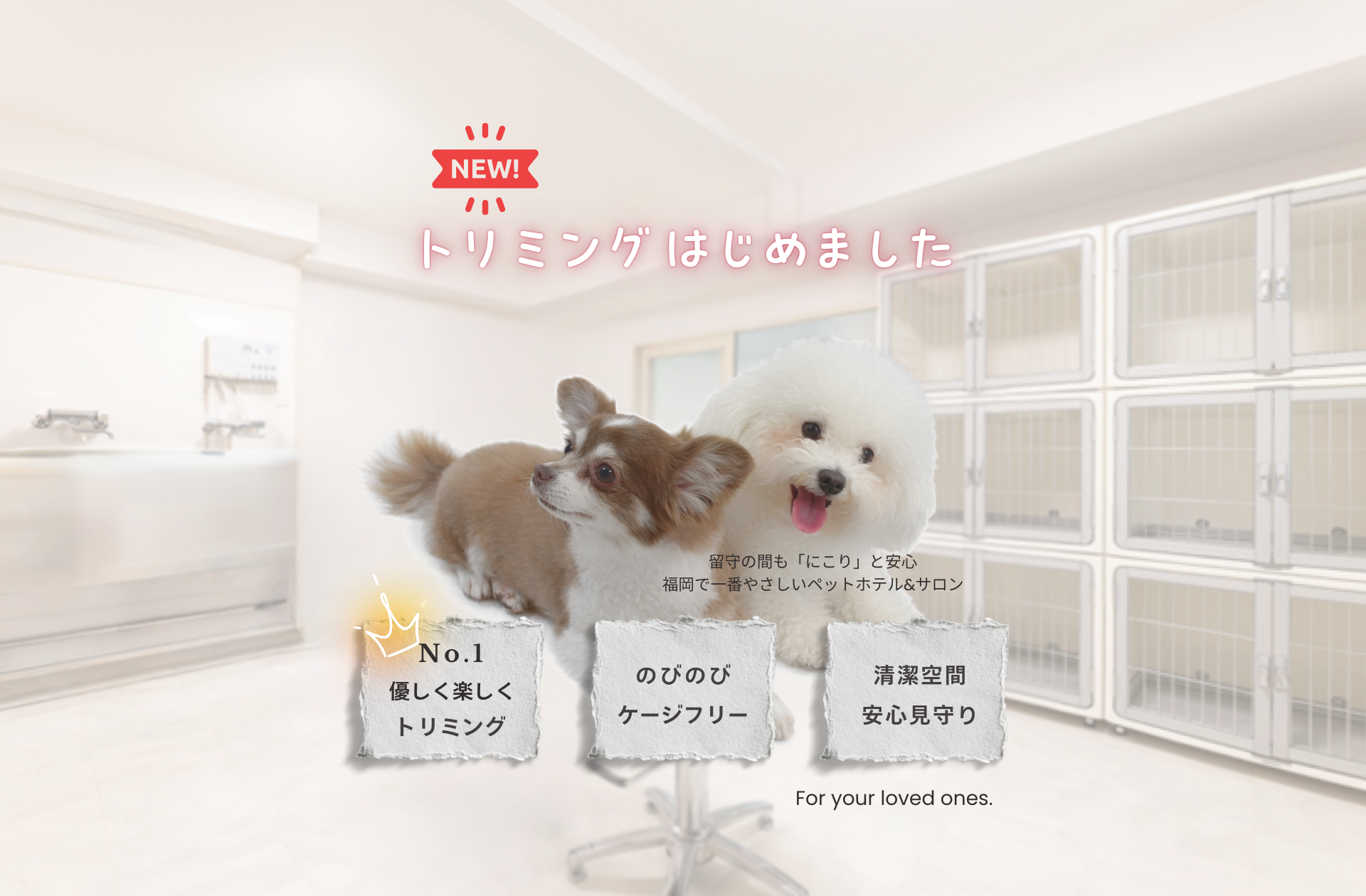 トリミングやペットホテルを、安心して任せられる場所を探している方へ。Nicori(ニコリ)は、仕上がりの可愛さはもちろん、わんちゃんが落ち着いて過ごせる環境を大切にしたドッグサロンです。